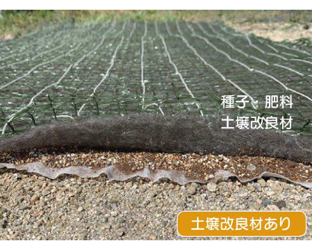 法面の保護、植生基盤を整備しながら、装着した種子の発芽・生育を促進します。現場の目的や施工条件に応じて、土壌改良材(植生補助資材)の装着量を変えた製品(グレード)を使い分けます。